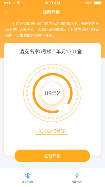 2、核对是否是自己想要开的房门,立即点击开锁进入人脸识别环节