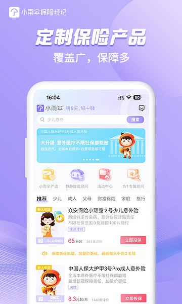 小雨伞保险app是一款非常实用的智能保险服务软件,提供全面且多样的保险选择,涵盖少儿到老人的各种需求。它利用互联网大数据分析技术,并与多家专业保险公司合作,用户可以随时获得专业解答和优惠活动。