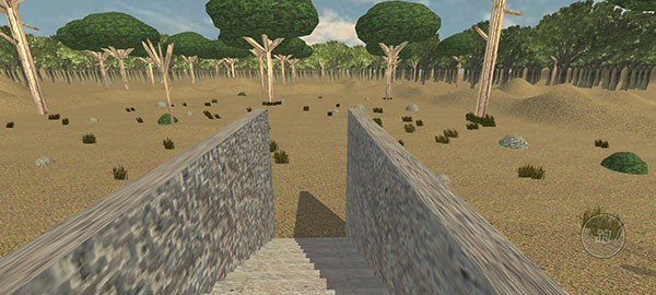 3、左边有虚拟按钮移动,右边按钮为跑,滑动屏幕可以移动视角;