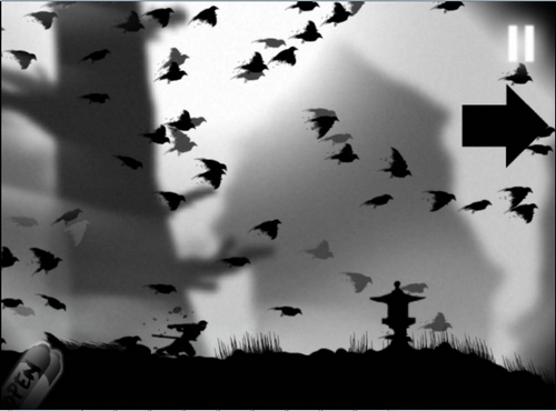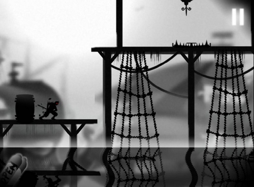 游戏以忍者为主角,那么背景就一定得是黑暗才行,因为忍者们是只能出没于黑暗中的杀手。本作的背景采用了黑白为主要色彩,透过月光能看到灰白色的天空,而所有的地面、树木、房屋建筑、甚至是敌人都是黑色的,只能依靠淡淡的月光来锁定他们的位置所在。游戏画面充满浓浓的水墨画风,黑白主色凸显出了黑暗中隐藏的杀机。
