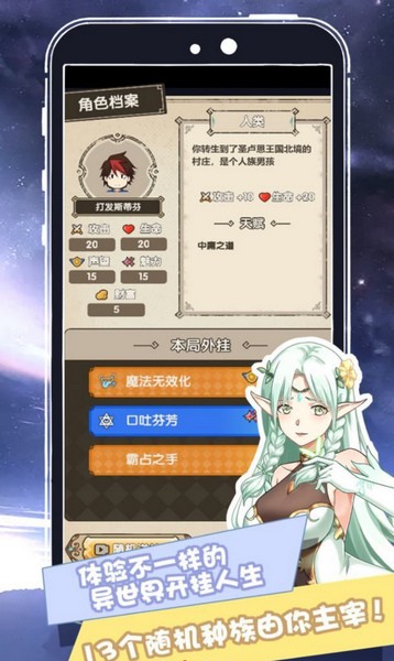 《我在异界的开挂人生》是一款充满奇幻冒险的RPG游戏,玩家可以扮演不同种族的角色,在异世界中开启属于自己的传奇故事。游戏的最大特色是拥有丰富的选择分支和随机天赋,每次游玩都能带来全新的体验。通过合理分配属性和选择外挂天赋,玩家可以在战斗中占据优势,击败强大的BOSS。