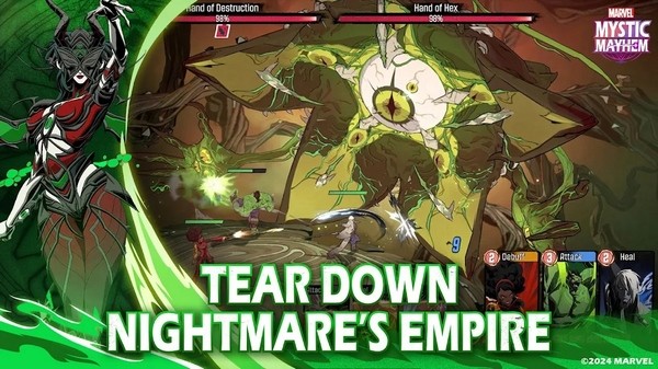 1、集结你的漫威团队:进入超级英雄和恶棍的噩梦王国,组建你的超级团队并释放他们的联合力量!与三位传奇角色一起制定战略,共同称霸战斗!