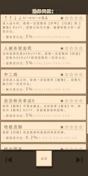 转生后获得一定数量天赋点,可以兑换一些天赋,3个一星天赋合成二星天赋,天赋商店跟其他商店一样大方,可以不看广澳无痛刷新。
