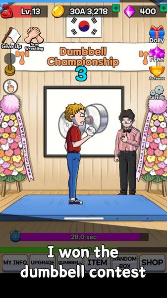 扳手腕无限钻石版中大量钻石的破解可以让大家去自由购买各种所需要的物品和健身设施来提高自己的实力,大量的扳手腕对手正等待着玩家们的挑战。作为一款独具特色的休闲小游戏,扳手腕非常适合大家无聊的时候用来消磨时间,即便是离线状态,人物的实力也会得到缓慢的增长,而在完成一个又一个的扳手腕挑战之后,大家也能够获得扳手腕大王的称号。