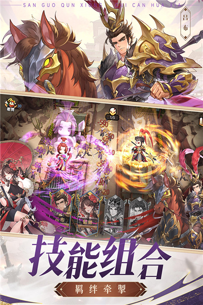 羁绊牵掣!五大阵营卡牌各具特色,减速、增伤、回血、中毒、闪避、沉默...等多种技能效果多样组合,可根据您的阵容搭配出多样化的流派,感受技能羁绊带来的闯关快感!