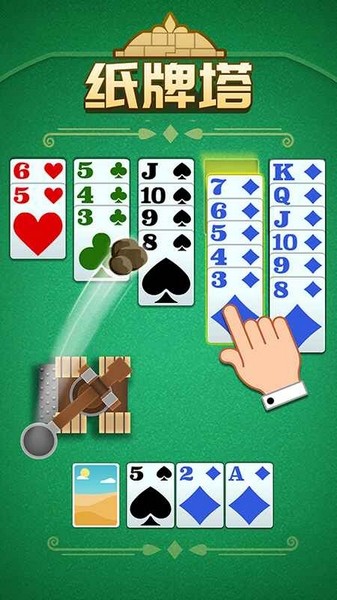 移动规则:在纸牌塔玩家只能将最顶层的单张纸牌移动到相邻的空位或其他塔顶,但必须符合特定的移动条件,如只能移动到比当前牌小1点数且同花色的牌上,或者遵循游戏设定的特殊规则(如允许任意花色但点数需递减的移动)。