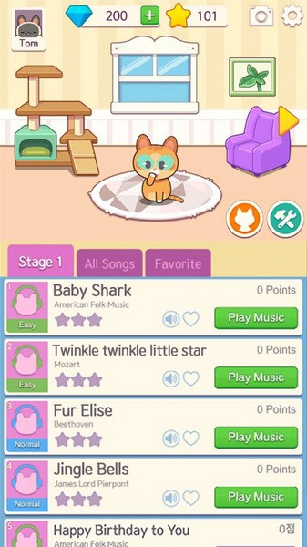 从简单的音乐游戏到闪电般的挑战性音乐游戏,CatPiano的音乐游戏对整个家庭都很有趣!