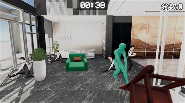 3、场景中的关卡会用各种各样的姿势来躲避椅子如芭蕾转圈圈、劈叉、闪躲、突然趴下。
