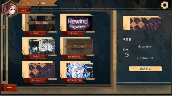 3、结合锐意创作的游戏美术作品,与乐曲和剧情主题相符的界面设计。