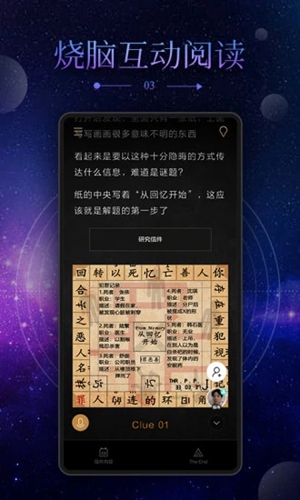 谜案馆中的“案件”是以文字、图片、音频、视频素材为基础的多维度阅读体验,同时融入了对话体阅读模式、解谜阅读模式和选择式阅读模式,你不再是一个被动的单一阅读者,而是可以通过种种形式,与故事中的角色互动起来,甚至自己成为主角,决定剧情的走向和故事的结局。
