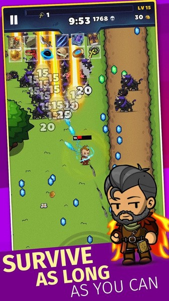 2、收集经验水晶并解锁新的史诗力量,这样你就可以在夜晚生存,利用经验水晶可以快速提升角色等级,不用重新刷怪积累经验。