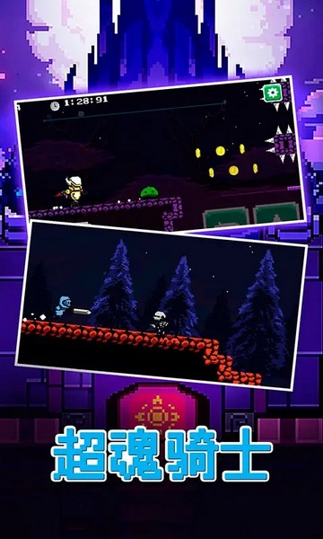 《超魂骑士》是一款像素风格的冒险手游,简单易上手,画面复古又充满怀旧感。游戏里玩家扮演骑士,白天行动夜晚灵魂出战,玩法挺有意思。关卡设计丰富,有21个不同的挑战,还有BOSS战和剧情任务,升级系统也很完善,战斗时需要灵活运用技能和躲避机制。
