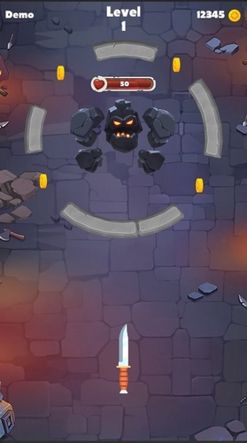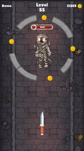 游戏非常简单,只要扔刀,击中旋转盾牌后面的怪物。