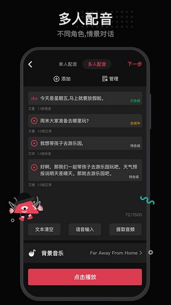 6、文案配音,支持会用户自行导入配音文件,并可以高效使用。