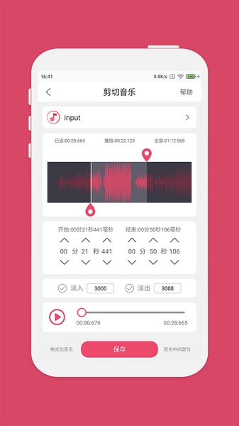 3、斗图音乐剪辑可将喜欢的视频提取原声音频,还支持多种音频格式的相互转换,支持同一音乐里裁剪出多段音频,多种音频裁剪模式。