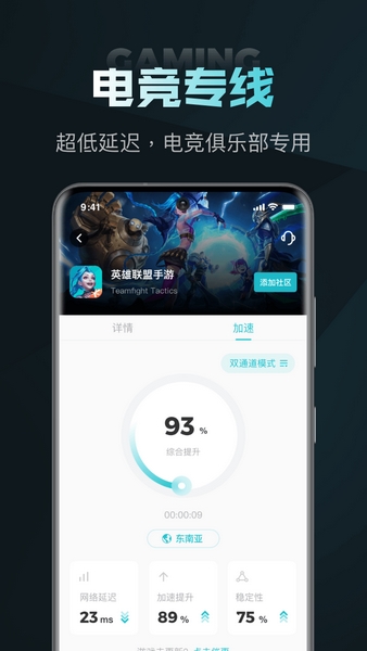 最让我喜欢的是它的智能掉线重连系统,基本上告别了以前经常掉包的问题。还有银行级别的专线,感觉网络延迟真的降低了很多。而且它还提供了语音交友服务,这样就能认识更多志同道合的朋友一起开黑了,挺有意思的。