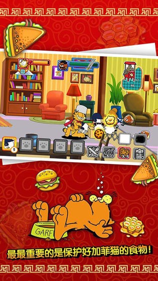 用饼干来给你的加菲猫升级,也可以升级技能、队友、家具等等任何你想要的。武装自己,使战斗力成倍增长,最终把家变成超级食物战场,外星人什么的根本就是小菜一碟,甚至连我们要保卫的冰箱都可以升级,外星人快来吧,打不过我你也带不走属于我的冰箱。