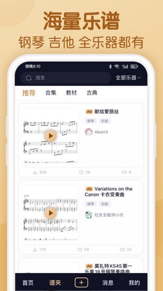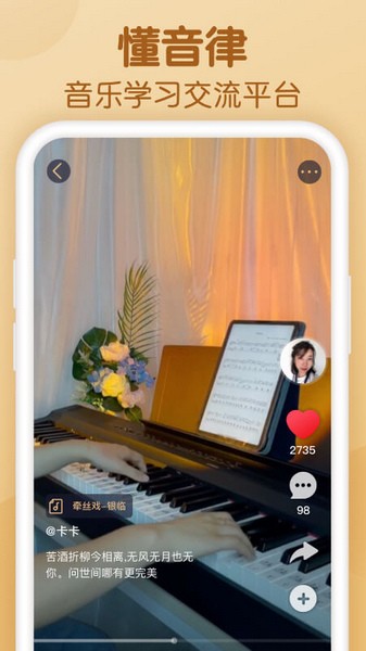懂音律是专为学习音乐的人打造的一款全乐器找谱练琴平台。有海量优质钢琴谱、吉他谱、尤克里里谱等各乐器曲谱。百万达人用户社区联动,优质曲谱上传分享,轻松找谱练习,交流学习。
