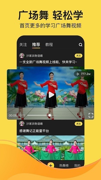 2、专为中老年人群打造的舞蹈学习、分享、社交的平台,有海量广场舞教学视频