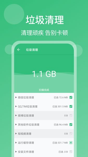 1、可以满足许多用户的清理需求,以后清理手机垃圾就会更快速;