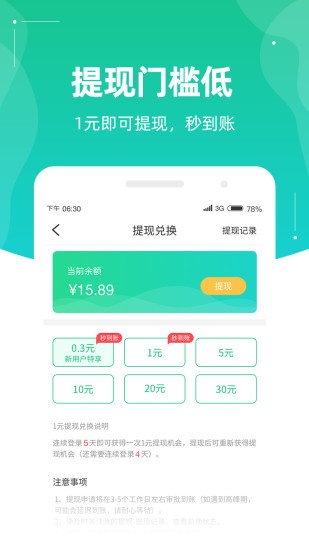 2、在这里,只需要赚足一元钱以上就可以轻松提现;