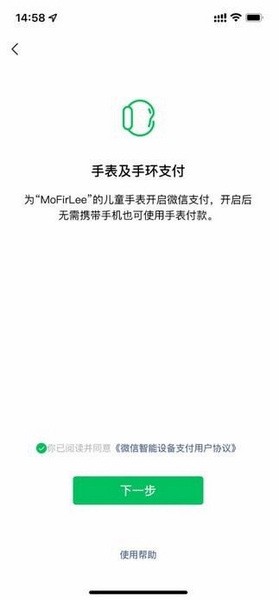微信支持在手表上开通并使用付款码的能力。