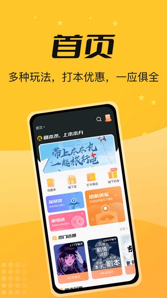 1、热门剧本,与全国保持剧本资源的同步,有任何新的剧本都会实时发布。