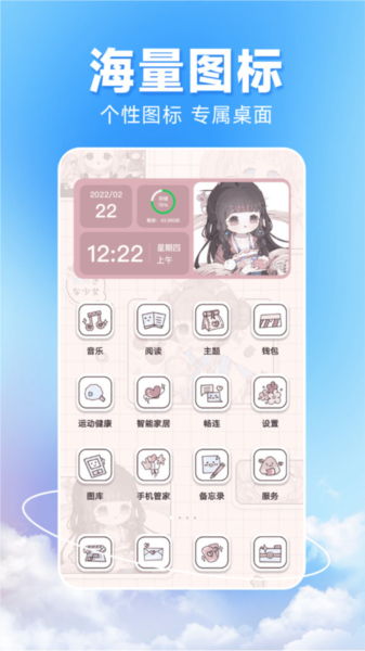 1、图标:许多风格的图标,可爱风、简洁风……轻松美化图标;