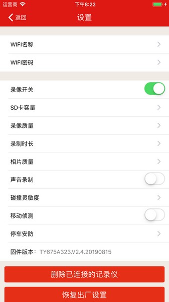 录像状态、画面质量、停车监控、移动侦测等功能全由手机一手掌控。