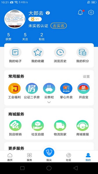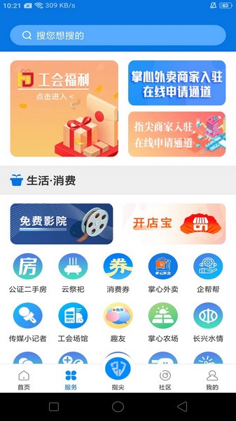 一、打开掌心长兴app,在服务界面中点击指尖