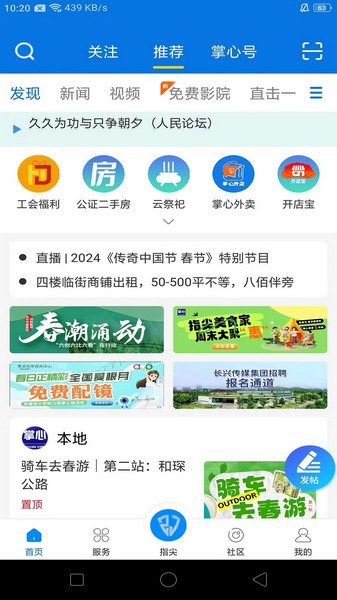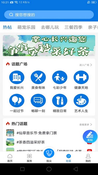 一、打开掌心长兴app,在社区界面中,点击发帖图标