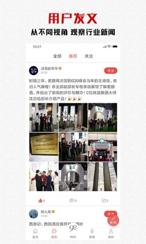 1、实时推送:重大新闻事件瞬间推送到您的手机,随时随地及时掌握酒业动向;