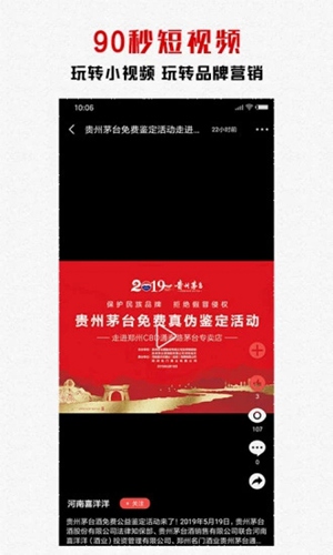 90秒短视频:平台实现当下火爆的“小视频”功能,让品牌曝光场景化、可视化,拉近品牌或商品的距离。