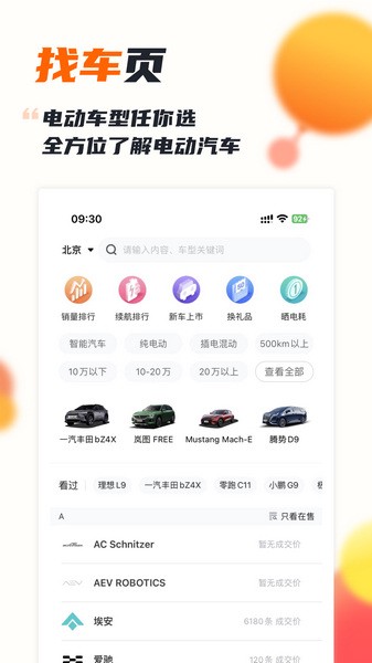 【实用功能】细致准确的车型参数配置、选车PK、车型图、成交价、口碑、销量排行等实用功能,让你第一电动在手,轻松看车选车。