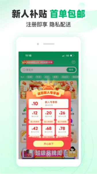 -新人注册即领256元购药红包;