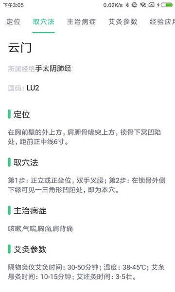 2、在经脉页面,提供各种穴位知识,可以了解各个穴位的主治疾病。