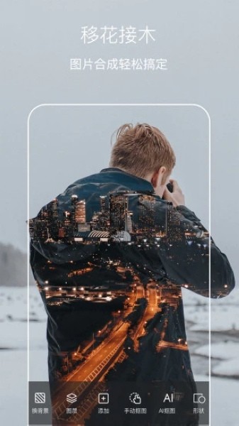 智能抠图技术:APP采用了AI识别算法,能够精准识别人像或物品,用户可以轻松抠出想要的部分,实现完美的抠图效果。