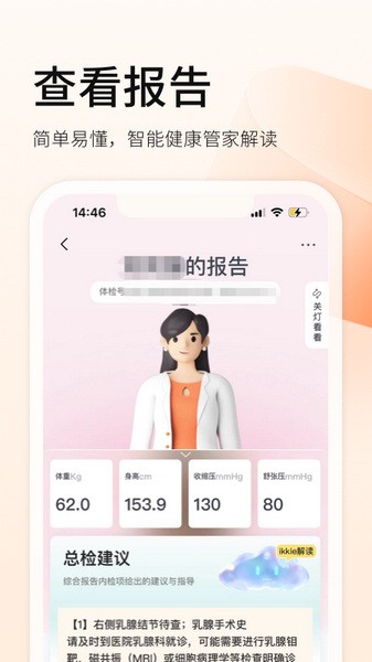 这款爱康体检宝app最新版真的超级方便!它能帮你预约各种体检套餐,还能自己选检查项目,避免漏掉重要检查。无论是个人还是团体预约,都能享受不同程度的折扣,特别适合公司组织体检。在体检过程中,手机上随时可以看到剩余项目和具体流程,完成后还能直接看报告,还有医生解读呢!特别是多次体检的话,还能对比历年数据,发现健康变化趋势。如果有重大隐患,还会被追踪管理,定期回访,真的很贴心。