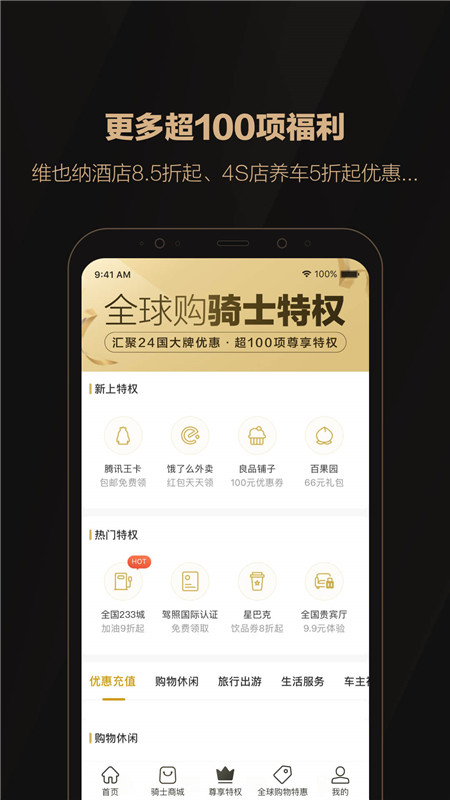 全球购骑士特权app是一款由广州探途网络技术有限公司开发的优惠购物APP。在你网购淘宝的时候,你有没有想过,你只需要几个操作,就可以让你想要的商品大降价!全球购骑士特权里集合了各种购物优惠券和特权,让你轻松体验到超VIP的价格!这里汇聚了24个国家购物,境内外优质特权。在这里可以享受更多的折扣待遇,包含全球范围,让你出国也能享受购物的愉快!