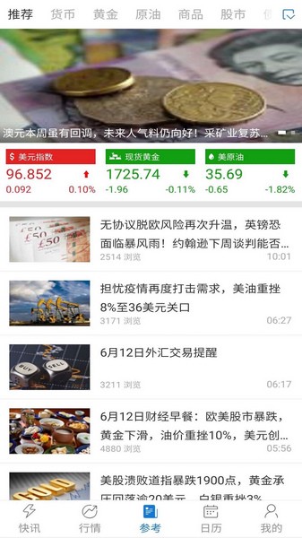 2、快讯行情日历,7×24小时,不间断进行及时、权威、专业的财经资讯直播与市场解读;