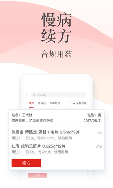 对于患者管理,这个App也做得很好,我可以轻松查看每位患者的健康档案和康复情况,这对追踪慢性病患者的病情发展特别有用。此外,用药助手也很专业,帮助我快速找到药品信息并避免用药配伍禁忌。