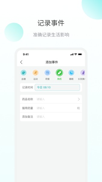 用户还可以在线准确记录对生活影响的事件,随时进行规范治疗。