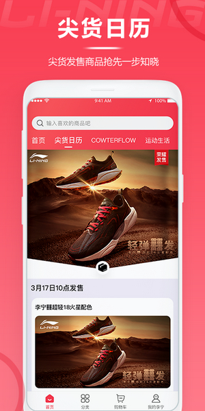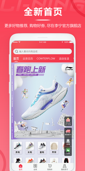 李宁app是一款李宁官方旗舰店的手机购物软件,是一款为用户提供运动鞋、跑步鞋、篮球鞋、休闲鞋、运动服、卫衣、羽毛球拍、乒乓球拍、Polo、T恤、背包等专业运动装备的软件。用户能够在李宁商城上在线查看当季好货、优惠信息、查看附近门店、防伪码查询、商品搜索、浏览、购买、支付、客服沟通等,满足了用户多样化的需求,也为用户提供了方便快捷的购物服务。软件主要为用户提供运动类服饰,为用户精选了海量最新的商品,商品分类明确,在线购物一目了然。平台还会定期举行商品促销打折活动,让您轻松省钱购物。