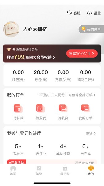 1、下载酷瓜好物app进入软件,用户注册并登录;