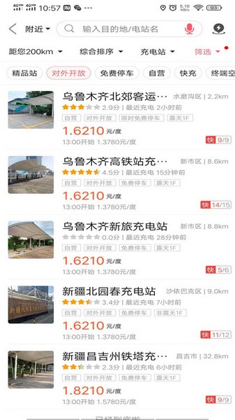 e疆充是一款为汽车车主提供充电相关服务的软件。在这款软件中用户可以快速查找指定地点附近的汽车充电站位置信息和收费标准,包含了服务评价、使用情况等信息,方便用户快速筛选合适的充电站。在抵达充电站后用户可以在手机上操作充电相关的服务办理,可以获取大概等待时间等信息。此外,用户还可以获得平台发送的抵价券等活动优惠。