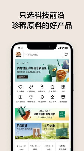 严格甄选创新、独特、优质的国际品牌,涵盖营养健康、美容护肤、魅力彩妆、母婴个护、全球美酒及家居生活等多个类别。