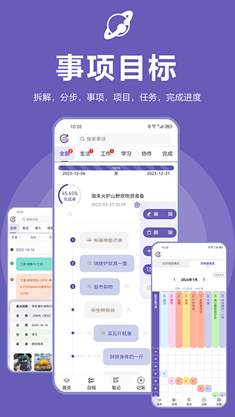 可以在土星计划将某项目或事项或任务,进行拆解登记,完成进度。