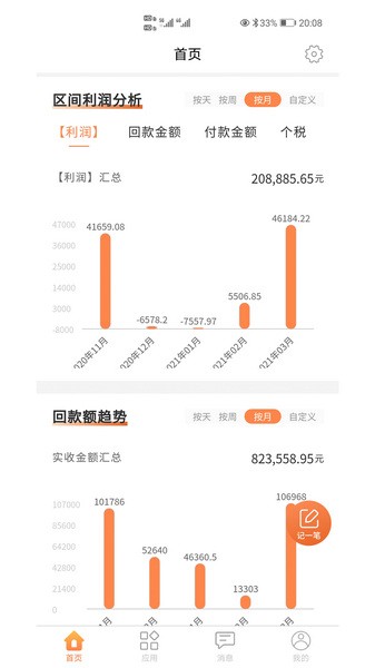 成本利润:通过科学的财务体系生成报表展现收支利润,现金流量情况