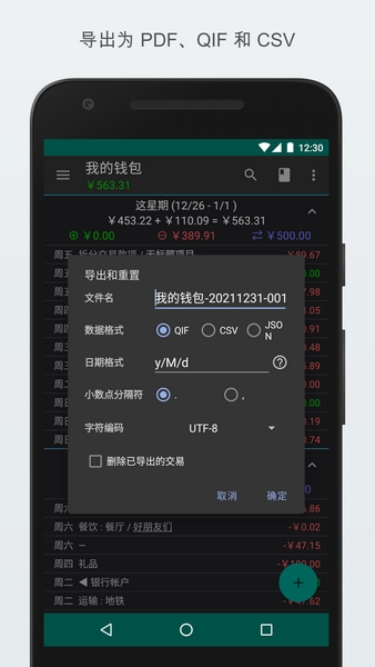 - 导出为QIF和CSV文件。从QIF文件导入