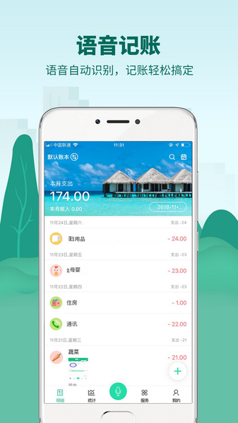 语音记账:对着手机说出记账内容,马上自动识别,即可轻松记账